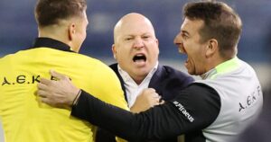 Ο Πεπ Γκουαρντιόλα μπήκε στον αγωνιστικό χώρο και κατευθύνθηκε προς τον διαιτητή αγριεμένος και φαίνεται να τον ρωτάει πλάκα μου κάνεις;!