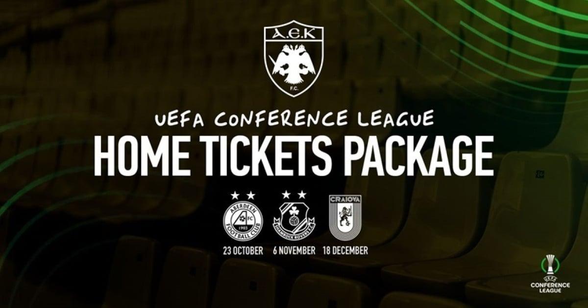 Η ΠΑΕ ΑΕΚ ανακοίνωσε την παράταση της διάθεσης του πακέτου εισιτηρίων για τα τρία εντός έδρας παιχνίδια της ομάδας στη League Phase του UEFA Conference League, έως την Πέμπτη 25 Σεπτεμβρίου 2025 στις 12:00 το μεσημέρι.