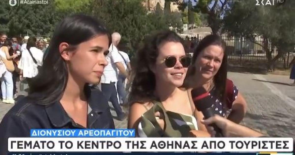 Γεμάτοι τουρίστες είναι οι δρόμοι της Αθήνας και στην Διονυσίου Αρειοπαγίτου βρέθηκε εκπομπή του ΣΚΑΪ με την δημοσιογράφο να σταματά Πορτογάλους τουρίστες και να τους ρωτάει αθλητικό περιεχόμενο.