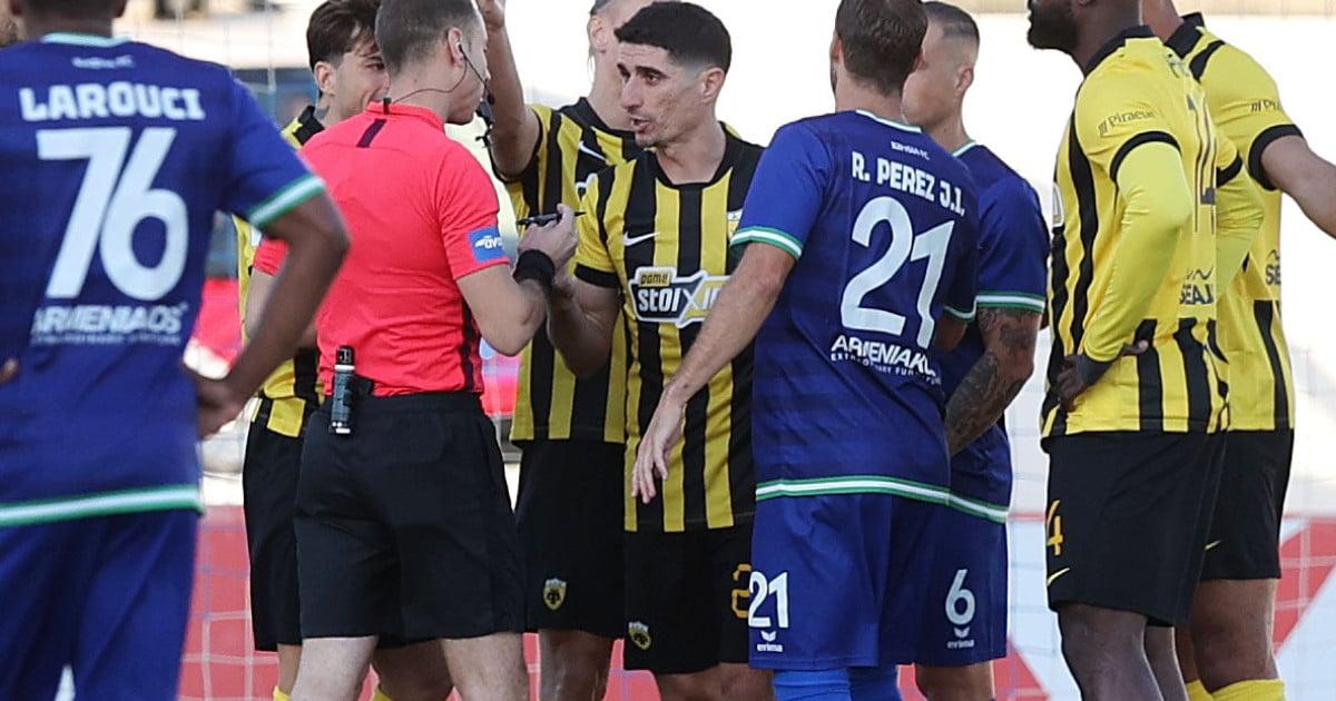 Στο 46′ η ΑΕΚ διαμαρτυρήθηκε για πέναλτι κόντρα στην Κηφισιά και δεν το πήρε. Σα να μην έφτανε αυτό για την Ένωση, τα πράγματα έγιναν ακόμα χειρότερα στο 48′ όταν η ομάδα του Μάρκο Νίκολιτς έμεινε με δέκα παίκτες ούσα πίσω στο σκορ με 2-1 (12 λεπτά αργότερα ο Γιόβιτς ισοφάρισε σε 2-2).