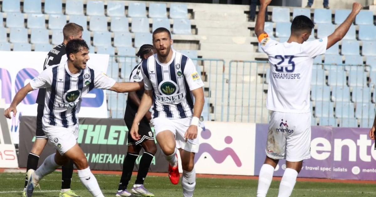 Ο Μύθου έδωσε γρήγορο προβάδισμα στον «Δικέφαλο του Βορρά» με εύστοχη εκτέλεση πέναλτι στο 3ο λεπτό, αλλά απάντησε ο Παναγιωτίδης στο 14’ για το 1-1 και ο Κούστα σκοράροντας στο 69’ χάρισε το τρίποντο στον «Γηραιό», που για την ώρα ξέφυγε στο +4 από τη Νίκη Βόλου.