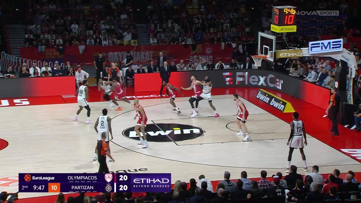 Ολυμπιακός – Παρτιζάν: Ο Φρανκ Νιλικίνα έδειξε τα αθλητικά του προσόντα και την προσήλωσή του στην άμυνα, κόβοντας εντυπωσιακά τον Στέρλινγκ Μπράουν σε σουτ τριών πόντων.