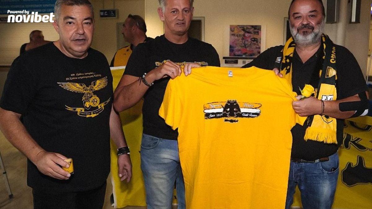 Παράλληλα ο Μάριος Ηλιόπουλος έχαιρε μιας πολύ όμορφης έκπληξης. Αντιπροσωπεία του Συνδέσμου Φιλάθλων ΑΕΚ Ηρακλείου, υποδέχθηκε την Κυριακή (9/11) τον Διοικητικό Ηγέτη της ΠΑΕ ΑΕΚ Μάριο Ηλιόπουλο, στην άφιξη του για τον αγώνα με τον ΟΦΗ, στο αεροδρομιο «Νίκος Καζαντζάκης» στο Ηράκλειο. Η υποδοχή από τον ιστορικό Σύνδεσμο της ΑΕΚ στην Κρήτη, είχε έντονο τον τοπικό χαρακτήρα, με Κρητικά εδέσματα και κέρασμα ρακής, όπως και … μαντινάδα αποκλειστικά για τον Μάριο Ηλιόπουλο και την ΑΕΚ.