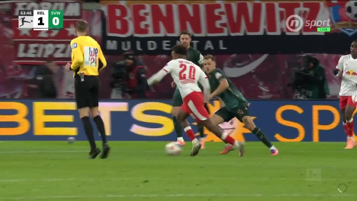 Στο δεύτερο ημίχρονο οι γηπεδούχοι ανέβασαν ρυθμό και απείλησαν για πρώτη φορά στο 59’, με τον Ουεντραόγκο να δοκιμάζει ένα επικίνδυνο σουτ. Λίγα λεπτά αργότερα, στο 63’, ο ίδιος παίκτης άνοιξε το σκορ με ένα εκπληκτικό τελείωμα, δίνοντας το προβάδισμα στη Λειψία.