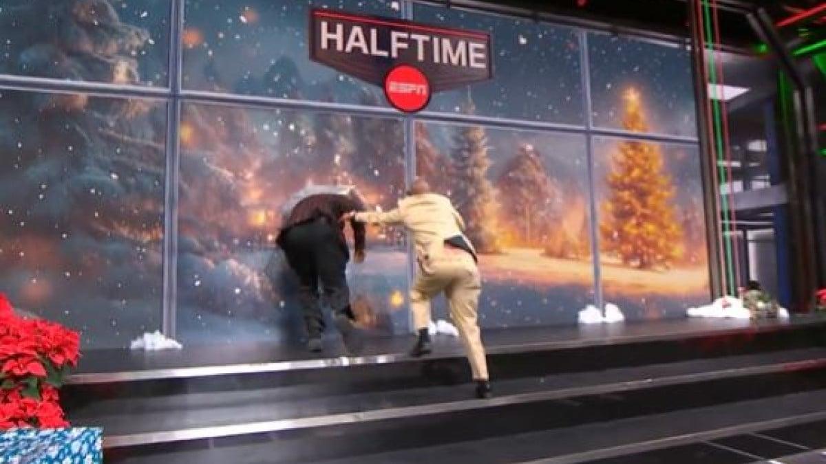 Το περιστατικό σημειώθηκε ανήμερα των Χριστουγέννων, κατά τη διάρκεια της εκπομπής του ESPN.Όλα ξεκίνησαν όταν ο Κένι Σμιθ άρπαξε το καπέλο του Ο’ Νιλ, με τους δύο πρώην NBAers να αρχίζουν να τρέχουν προς τη γιγαντοοθόνη του πλατό.