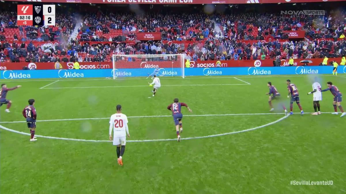 Η Σεβίλλη είχε τη μεγάλη ευκαιρία να ξαναμπεί στο παιχνίδι στις καθυστερήσεις, ωστόσο στο 90’+2’ ο Ρομέρο αστόχησε σε πέναλτι με τον Μάθιου Ράιαν να λέει όχι στον Ίσαακ Ρομέρο δύο φορές!