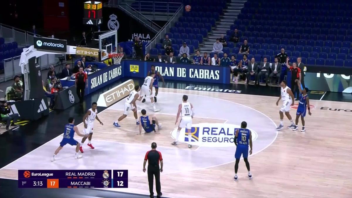 Οι Ισραηλινοί του Οντέν Κάτας αιφνιδίασαν τους γηπεδούχους, πήραν κεφάλι στο σκορ και δημιούργησαν διαφορά η οποία έφτασε έως τους 8 πόντους (33-41 στο 16΄). Εκεί άρχισε η αντεπίθεση της Ρεάλ που έκλεισε το ημίχρονο με προβάδισμα 48-47 και συνέχισε στον ίδιο ρυθμό στην τρίτη περίοδο, κατά την οποία προηγήθηκε 68-55 στο 27΄ έχοντας τρέξει επί μέρους σκορ 35-14 από τότε που βρέθηκε πίσω με 8 πόντους. Στο 32΄ η διαφορά στρογγυλοποιήθηκε στους 20 (85-65) με γρήγορο 9-0 για την ομάδα του Σέρτζιο Σκαριόλο που έφτασε στη νίκη με το τελικό 98-86 και κορυφαίους τους Χεζόνια (16π.,4ρ.,3ασ.), Ταβάρες (9π.,11ρ.) και Φελίθ (12π. με 4/5 τρίποντα). Οι Ντιμπαρτολομέο (14π., 4ρ.) και Λιφ (13π., 5ρ.) ήταν οι καλύτεροι της Μακάμπι.