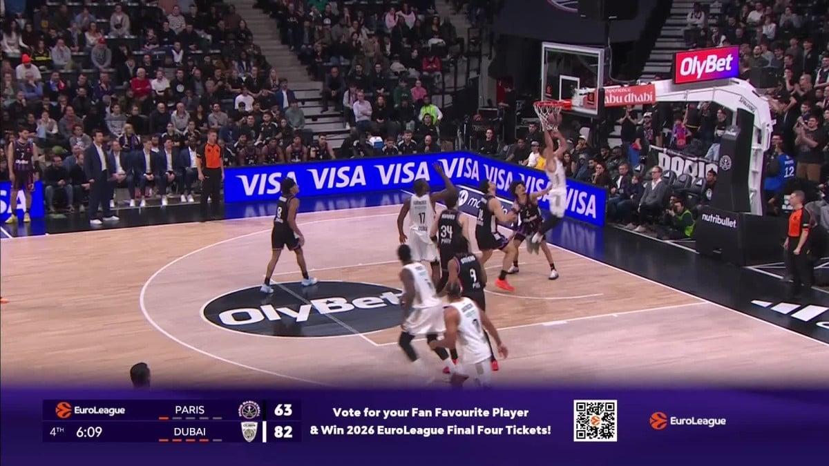 Στη φάση της βραδιάς στο Παρίσι, ο Αλέκσα Αβράμοβιτς έδωσε ασίστ χωρίς να βλέπει στον Καμπενγκέλε και αυτός κάρφωσε τη μπάλα με μανία στο καλάθι της Παρί.