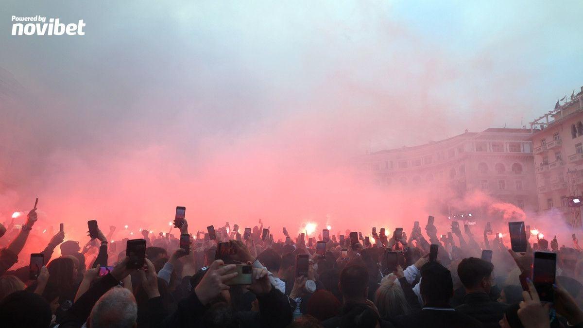 Ο αρχιτέκτονας των σύγχρονων επιτυχιών του Δικεφάλου θέλησε να γίνει ένα με τον κόσμο στη μεγάλη γιορτή της Πλατείας Αριστοτέλους, αλλά η δημοφιλία του είναι τέτοια που η κρυφή του εμφάνιση μετατράπηκε γρήγορα σε μια αυθόρμητη εκδήλωση λατρείας.