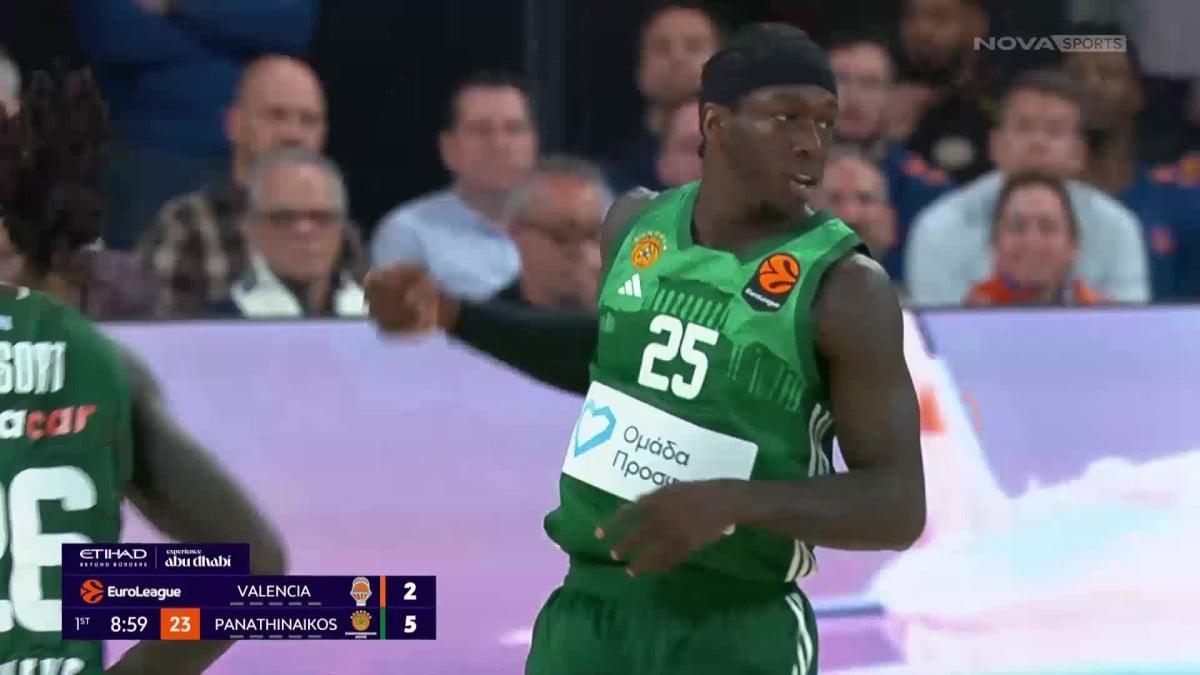 Βαλένθια – Παναθηναϊκός: Ούτε τέσσερα λεπτά δεν χρειάστηκε ο Κέντρικ Ναν για να γίνει διψήφιος, εκκινώντας εντυπωσιακά και πετυχαίνοντας 10 πόντους!